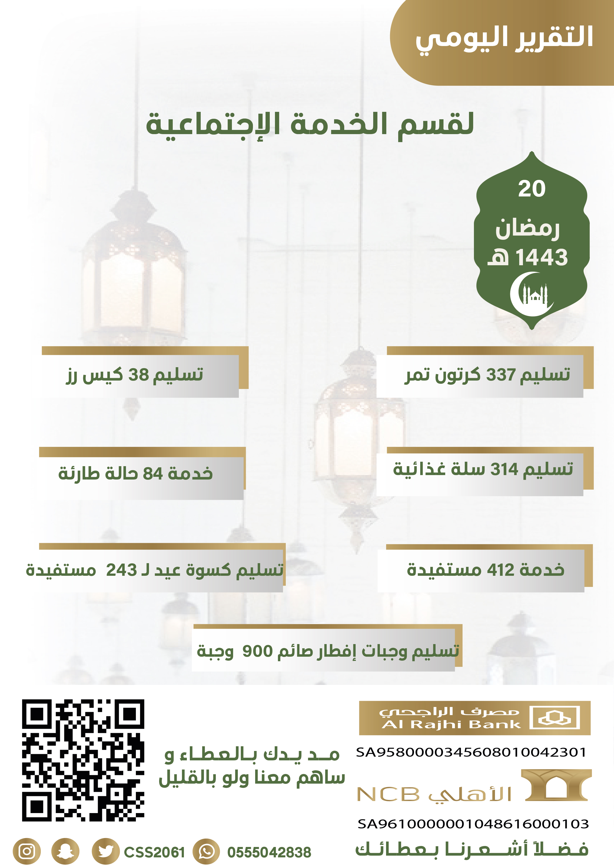 احصائية قسم الخدمة الاجتماعية 2024احصائية قسم الخدمة الاجتماعية 2024التقارير المالية للأقسام والوحدات الخدمية لعامي 2023/2022التقارير المالية للأقسام والوحدات الخدمية لعامي 2023/2022احصائية قسم الإسكان التنموي 2023احصائية قسم الخدمة الاجتماعية 2023احصائية قسم الخدمة الاجتماعية 2023احصائية قسم الخدمة الاجتماعية 2023احصائية قسم الخدمة الاجتماعية 2022احصائية قسم الخدمة الاجتماعية 2022التقارير اليومية لشهر رمضان المبارك 1443 هـ إحصائيات قسم الخدمة المجتمعية لعام 2020 Facebook Twitter